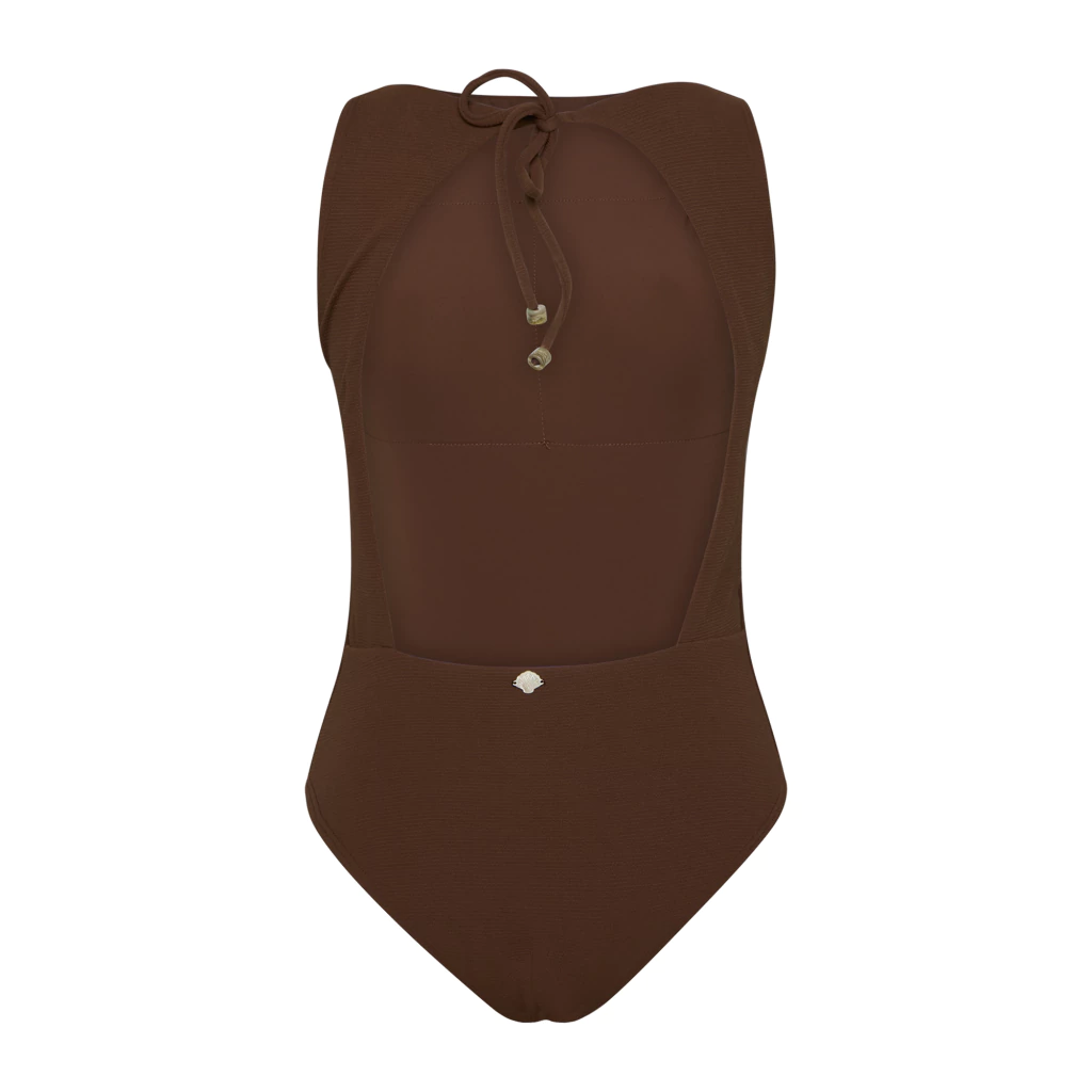 O Maiô Tônia traduz a sofisticação do minimalismo em linhas limpas e atemporais. Na frente, o decote fechado traz elegância moderna; nas costas, o decote profundo adiciona sensualidade na medida certa. Totalmente forrado e com bojo removível, garante conforto, sustentação e liberdade de movimento.